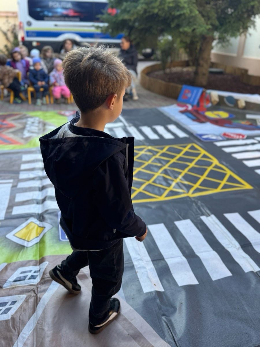 Copiii au ascultat curioşi detalii despre meseria mult râvnită de mulți dintre ei, au privit cu fascinație uniforma polițiștilor și au participat cu interes la activitate, bucurându-se să se deplaseze corect pe macheta cu traseul rutier special amenajat.