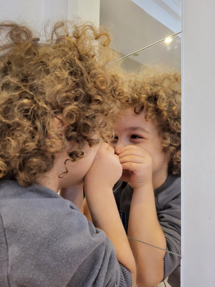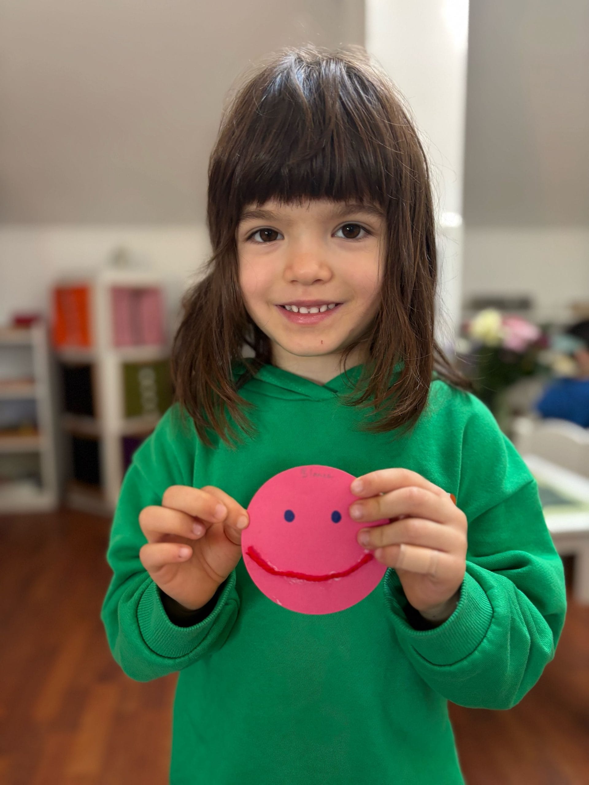Dimineața a continuat cu „Jocul Oglinzii”, iar copiii s-au distrat imitând expresii de bucurie, tristețe, frică, uimire sau chiar furie. În timp ce mimau emoțiile, copiii s-au privit în oglindă, iar activitatea noastră s-a încheiat cu multe râsete.